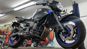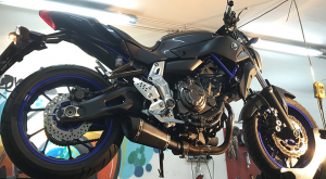 - Adaptación de colector y escape para una Yamaha XJ6En esta ocasión el cliente traía unos colectores de una Yamaha Fazer y los adaptamos a esta XJ6. También adaptamos un escape Leo Vince dándole un aspecto más racing.