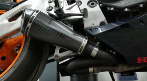 - Honda CBR 1000 RR con escape cónicoAdaptación de uno de nuestros escapes de acero inoxidable con la punta de carbono y db killer regulable. Se ha aprovechado el serpentín que trajo el cliente, adaptándolo al nuevo escape y pintándolo con pintura anticalórica y así disimularlo mejor.