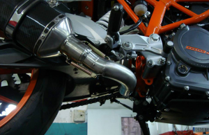 - KTM Duke 690 con escape cónicoAdaptación de escape cónico inoxidable con punta de carbono con db killer regulable. Preparando el escape original para poder volver a montarlo.