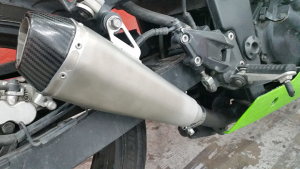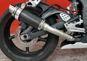 - Kawasaki ZX10R con supresor de catalizadorHemos eliminado el catalizador de esta preciosa ZX10R, con esto ganas menor retención del motor y mejor entrega de la potencia.