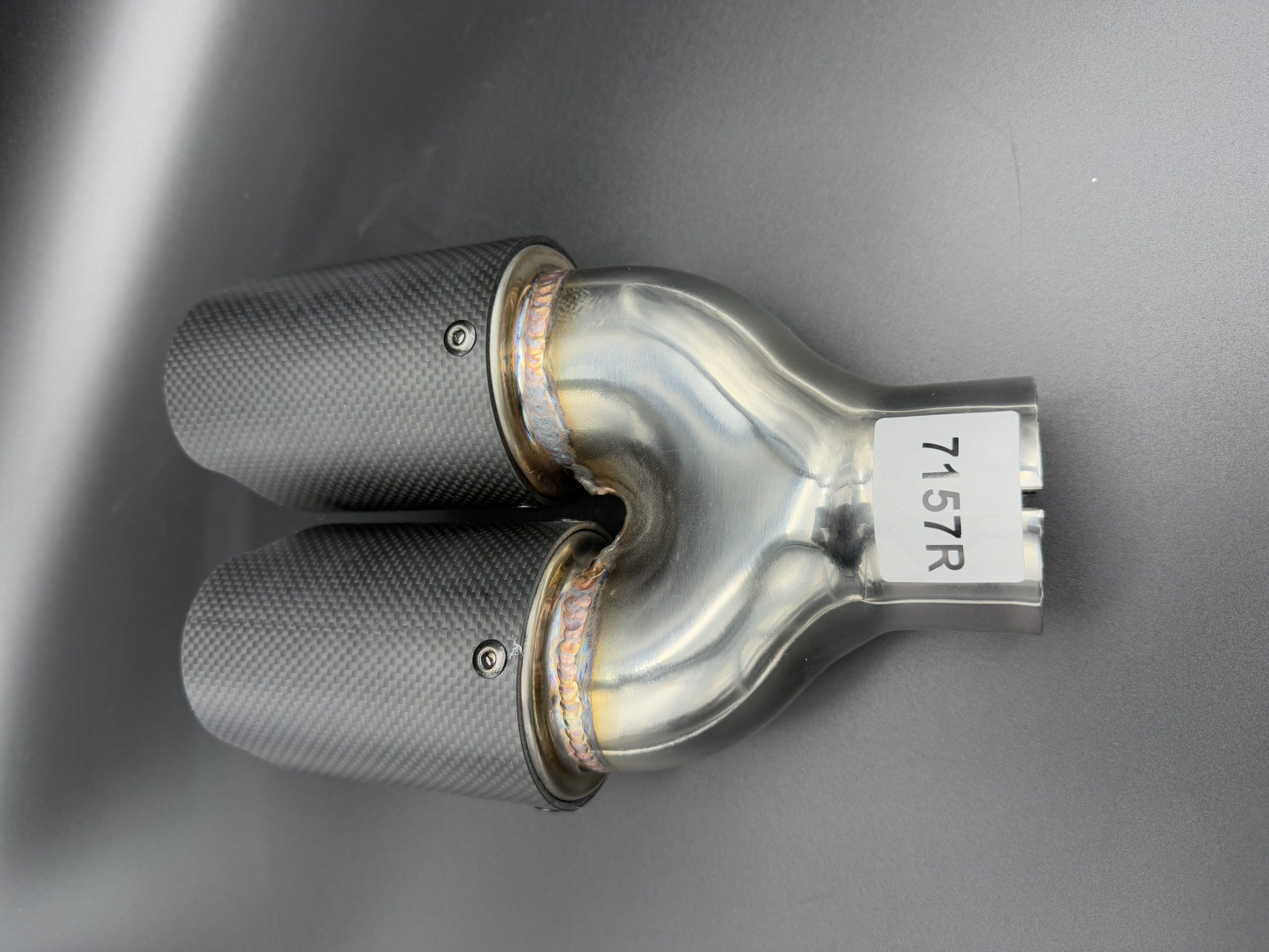 Cola de escape fabricada en acero inoxidable 304, con fundas de carbono, ofreciendo una gran resistencia a la corrosión y un acabado racing de alta calidad. Su diseño para el lado derecho proporciona una estética deportiva y agresiva, mejorando la apariencia del sistema de escape.