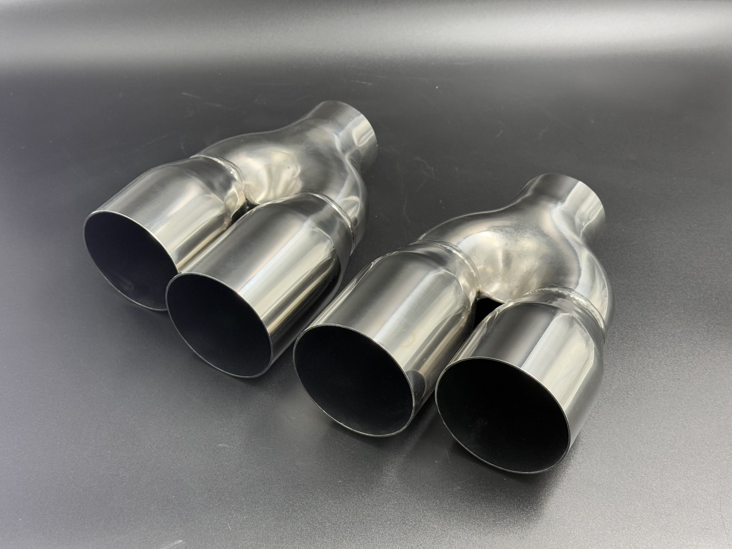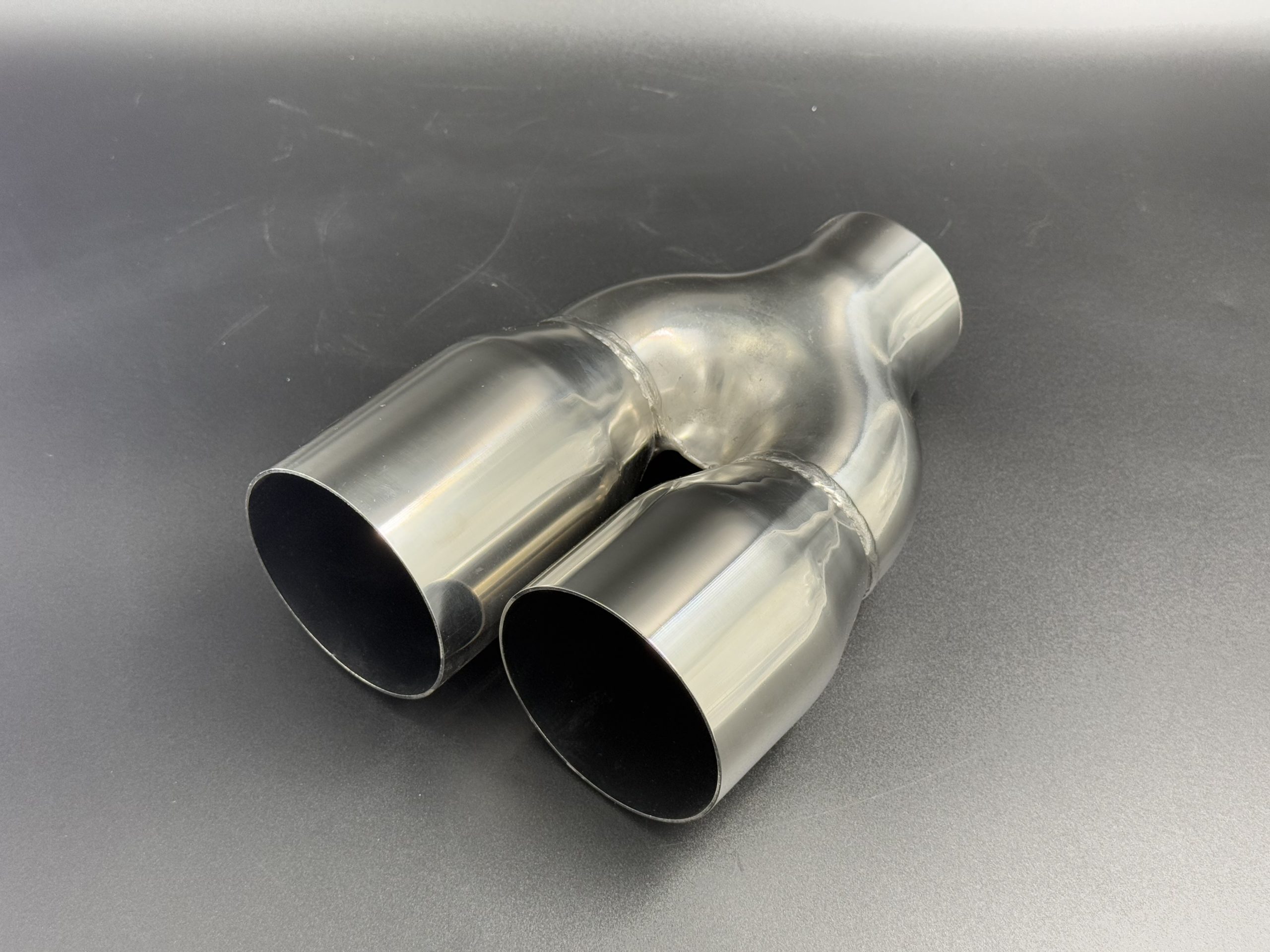 Cola de escape doble redonda fabricada en acero inoxidable 304, diseñada para ofrecer un estilo deportivo y elegante al sistema de escape. Con doble salida de 80 mm y entrada de 60 mm, su diseño reversible permite usarla tanto en el lado derecho como en el lado izquierdo del vehículo, aportando versatilidad y un acabado impecable.