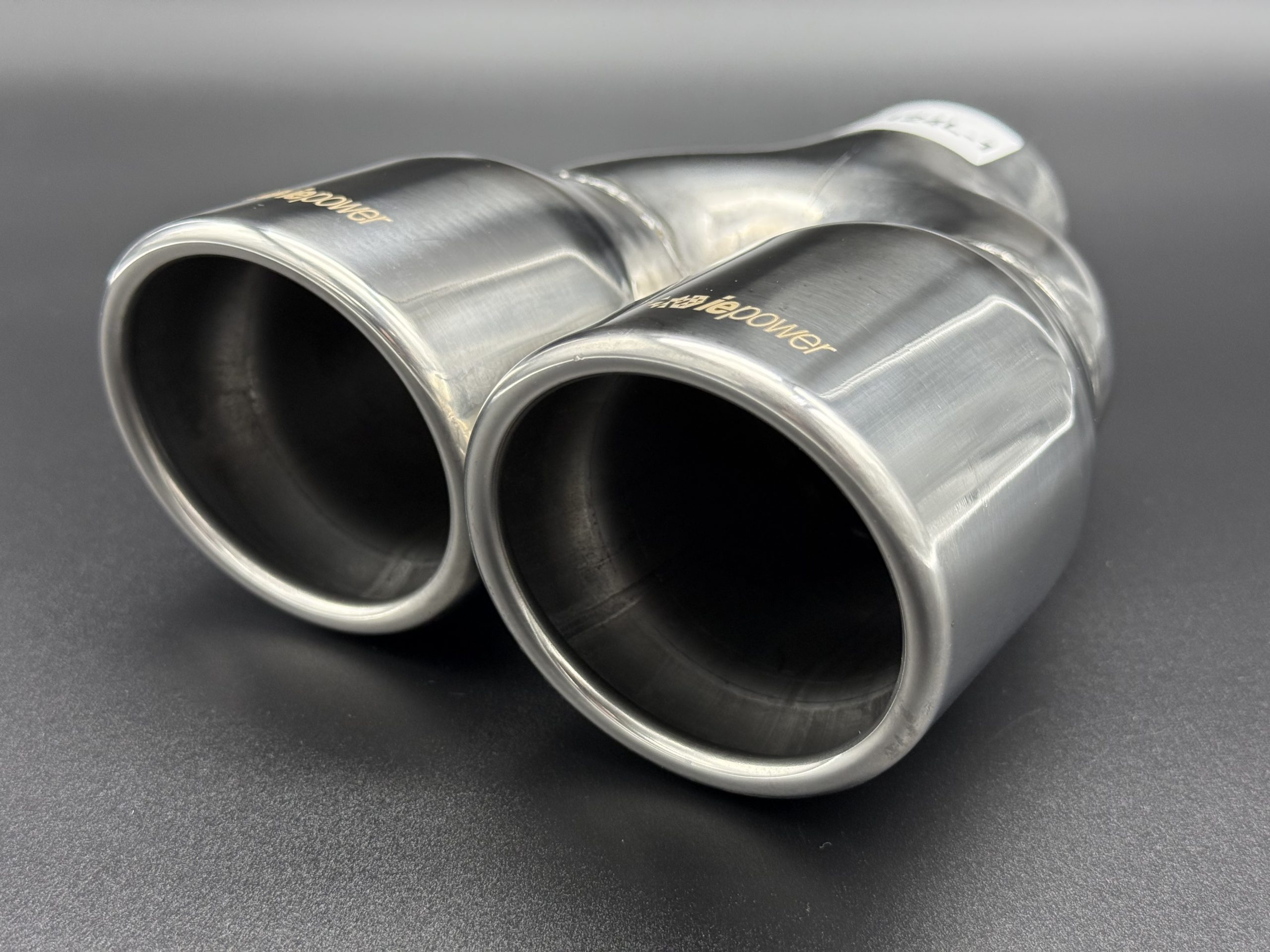 Cola de escape doble fabricada en acero inoxidable 304 pulido, ofreciendo una gran resistencia a la corrosión y una excelente durabilidad. Su diseño oblicuo proporciona un acabado deportivo y elegante, mejorando la estética del sistema de escape. Este modelo está diseñado específicamente para el lado izquierdo.