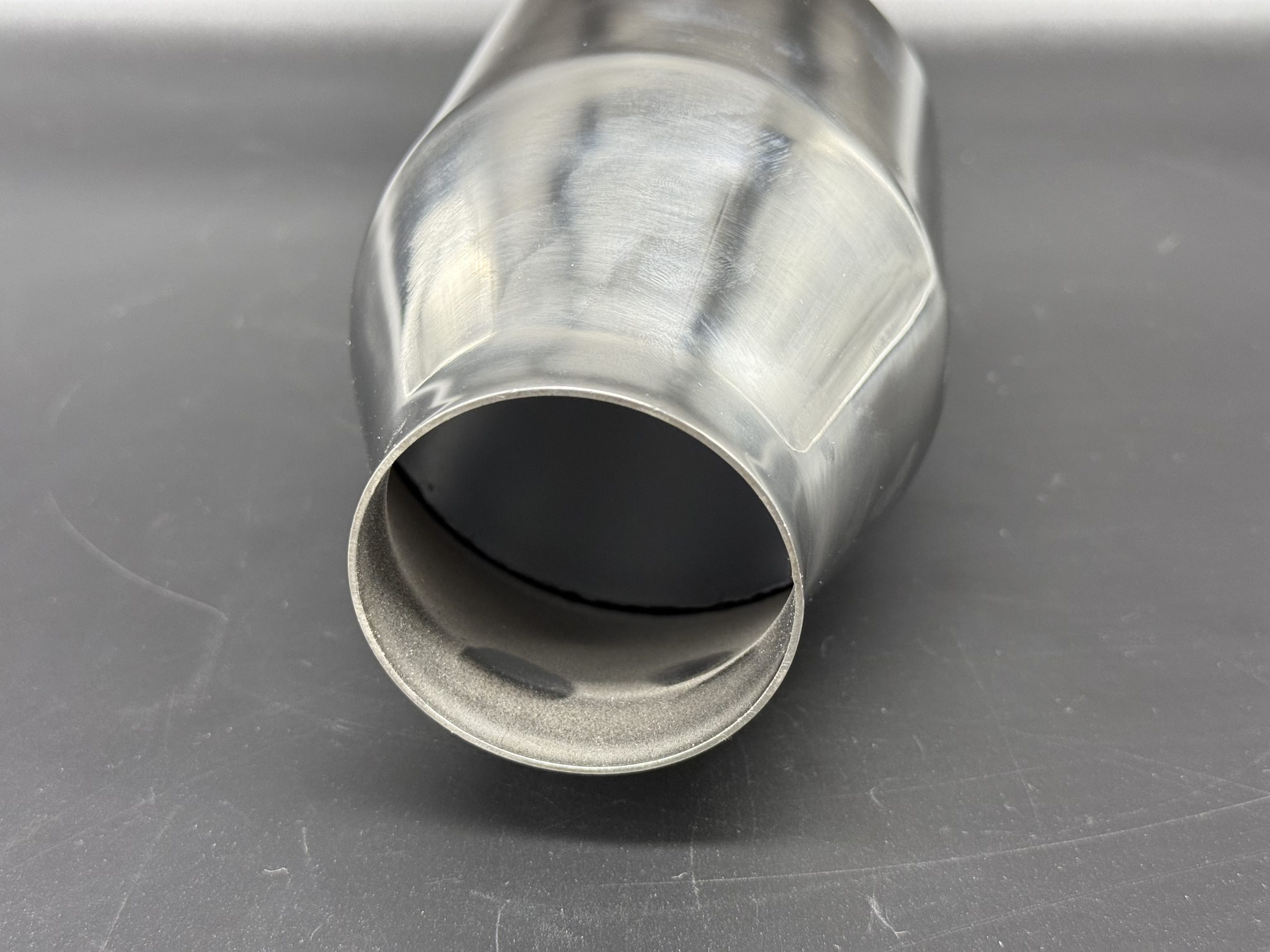 Cola de escape redonda fabricada en acero inoxidable 304, diseñada para ofrecer un acabado deportivo y limpio al sistema de escape. Con salida de 101 mm y entrada de 60 mm, es perfecta para vehículos que buscan mejorar la estética de su sistema de escape con un toque moderno y elegante.