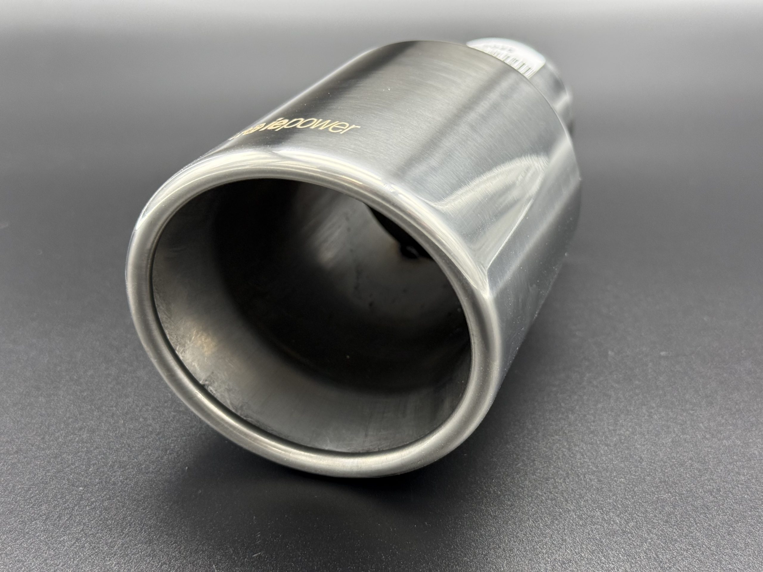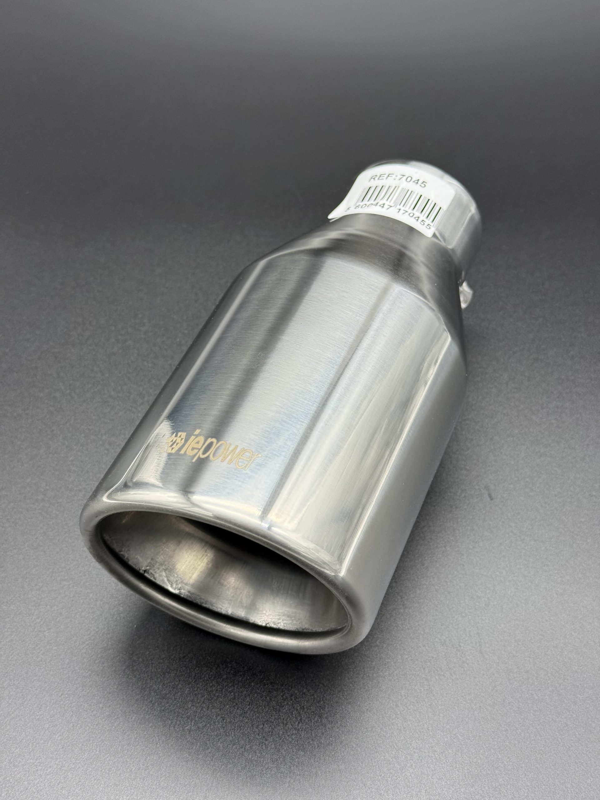 Cola de escape fabricada en acero inoxidable 304 pulido, ofreciendo una gran resistencia a la corrosión y una excelente durabilidad. Su diseño oblicuo mejora la estética del sistema de escape, proporcionando un acabado deportivo y elegante.