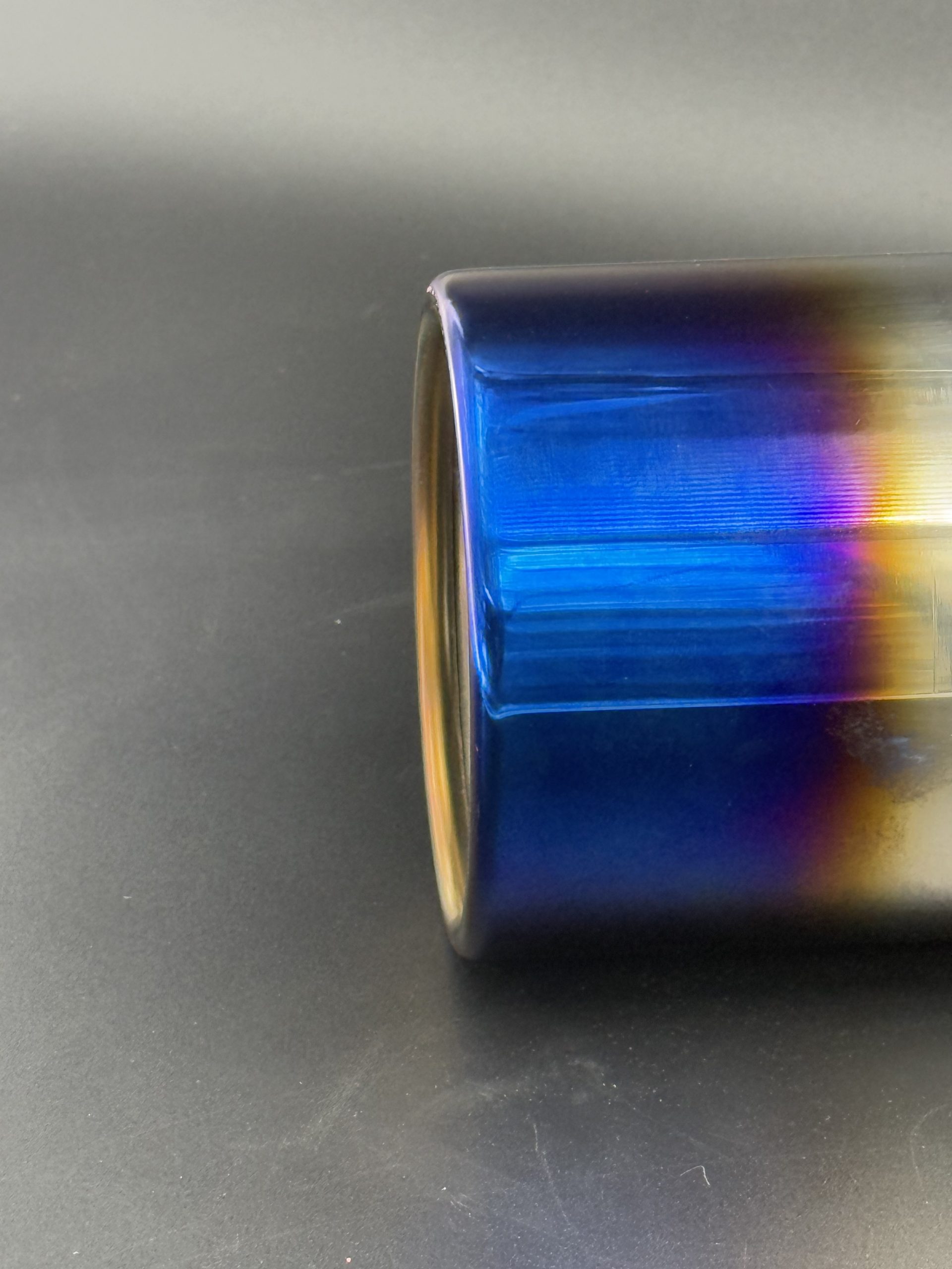Cola de escape redonda fabricada en acero inoxidable 304 con acabado azulado, diseñada para ofrecer un toque deportivo y exclusivo al sistema de escape. Con una salida de 89 mm y entrada de 60 mm, es ideal para personalizar el vehículo con un estilo moderno y dinámico.
