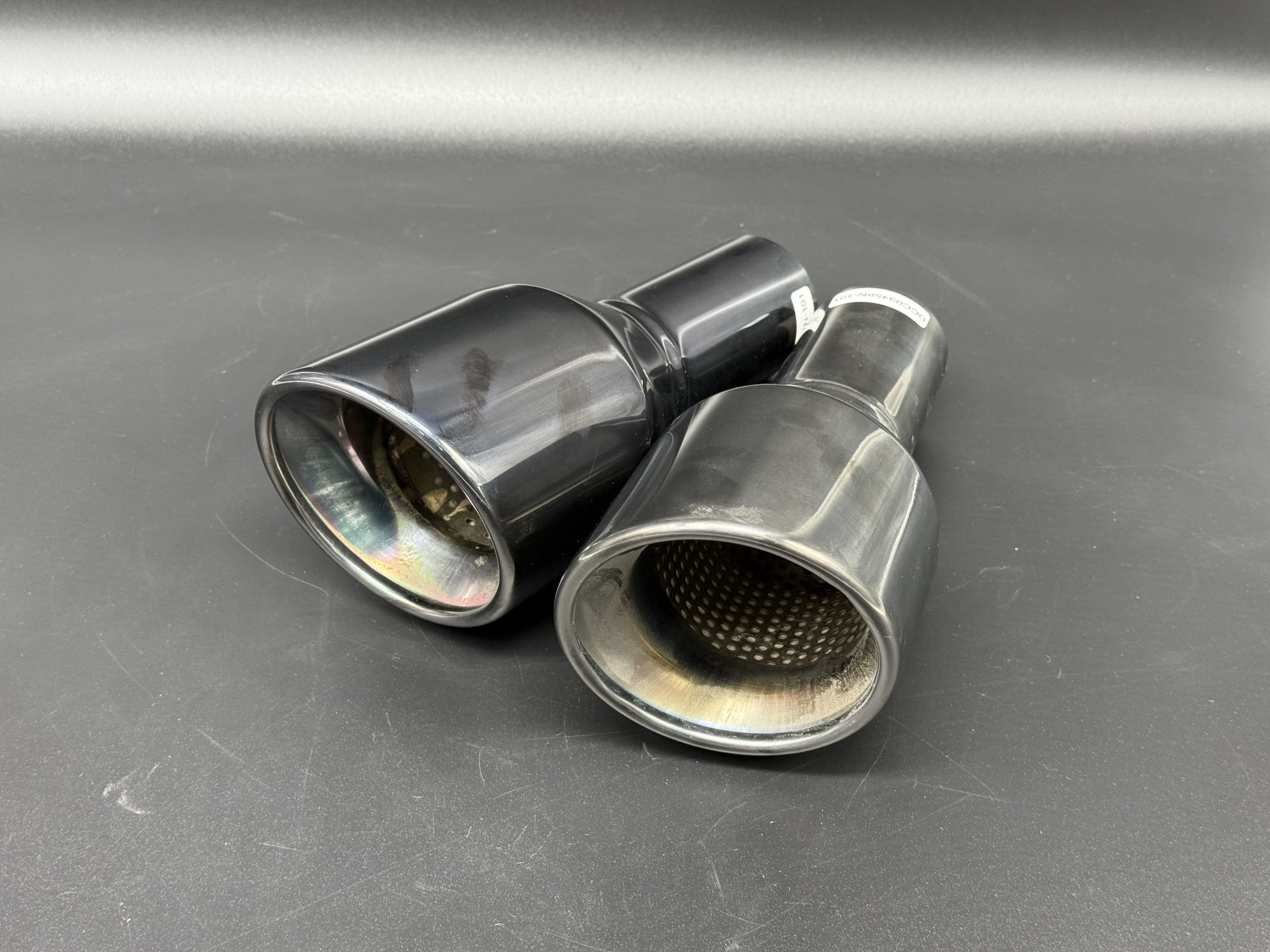 Set de colas de escape dobles fabricadas en acero inoxidable SUS304/T304, con un exclusivo acabado negro, ideal para quienes buscan un diseño moderno, deportivo y elegante en su vehículo. Su diseño redondo y corte oblicuo aporta un estilo agresivo y sofisticado, mejorando la estética del sistema de escape.