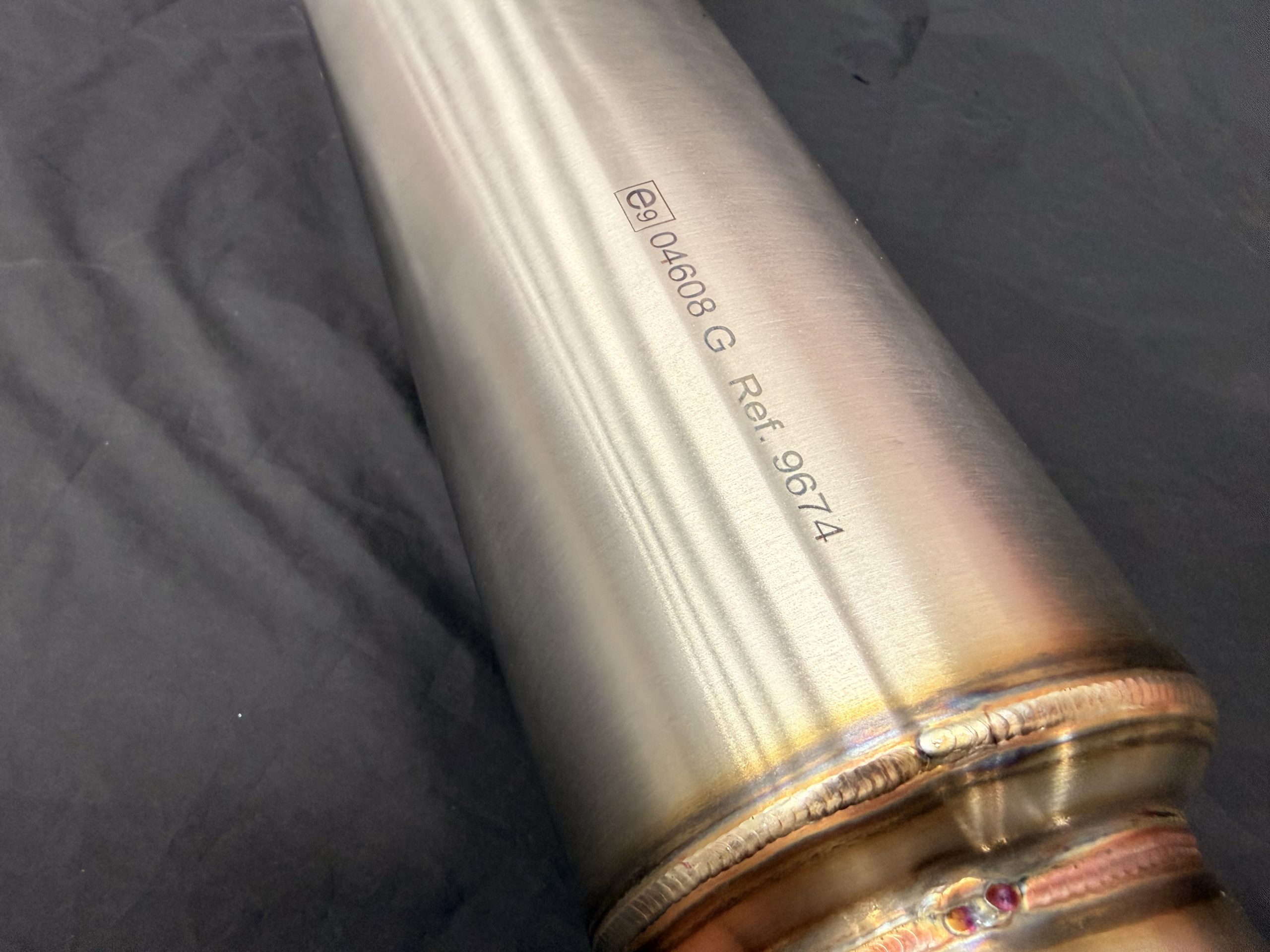 El cuerpo del silencioso está fabricado en acero inoxidable, ofreciendo una excelente durabilidad, buena resistencia a altas temperaturas y un acabado de alta calidad.