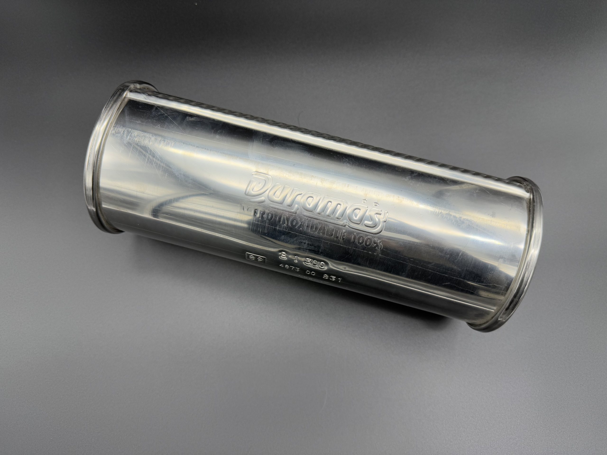 El escape de la marca Duramás con homologación, modelo INX B 1 300 60, está fabricado en acero inoxidable de alta calidad, asegurando una excelente resistencia a la corrosión y una larga durabilidad. Este modelo compacto y eficiente es ideal para vehículos que requieren un diseño sencillo y funcional, optimizando el flujo de gases en un espacio reducido.