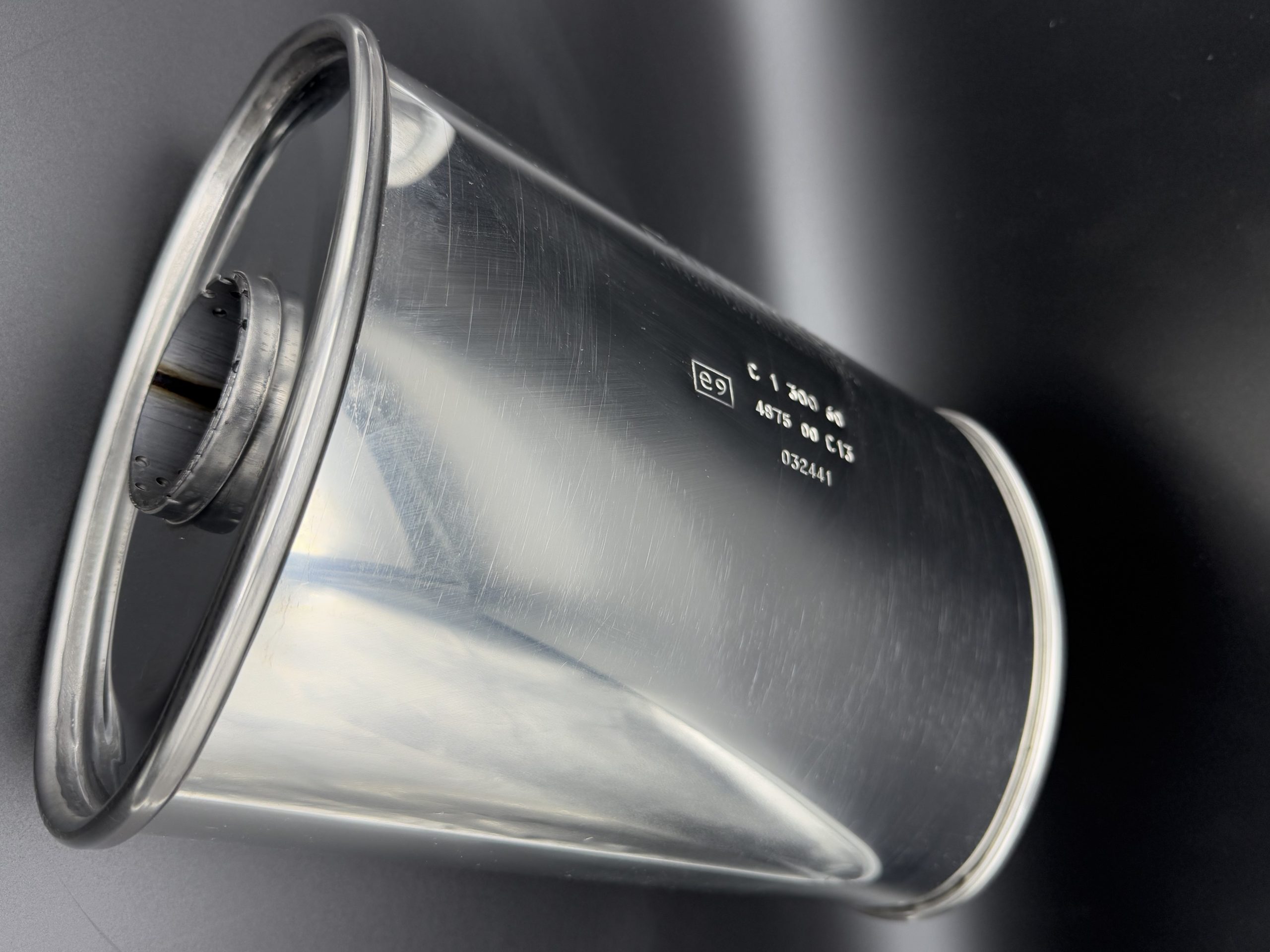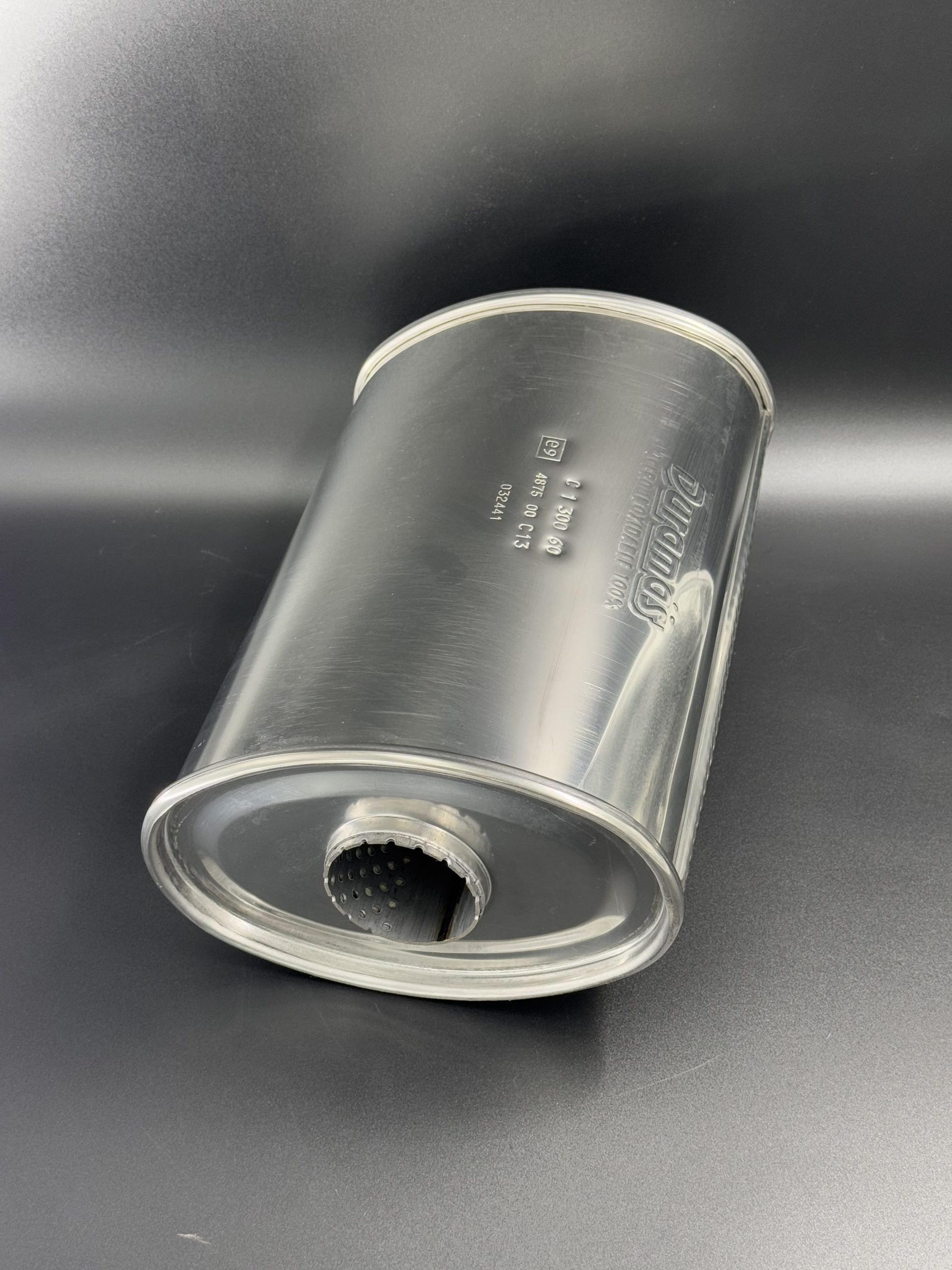 El escape de la marca Duramás con homologación, modelo INX C 1 300 60, está fabricado en acero inoxidable de alta calidad, ofreciendo una excelente durabilidad y resistencia a la corrosión. Este modelo compacto, con un diseño robusto, es ideal para vehículos que requieren un silencioso eficiente y funcional con medidas intermedias.