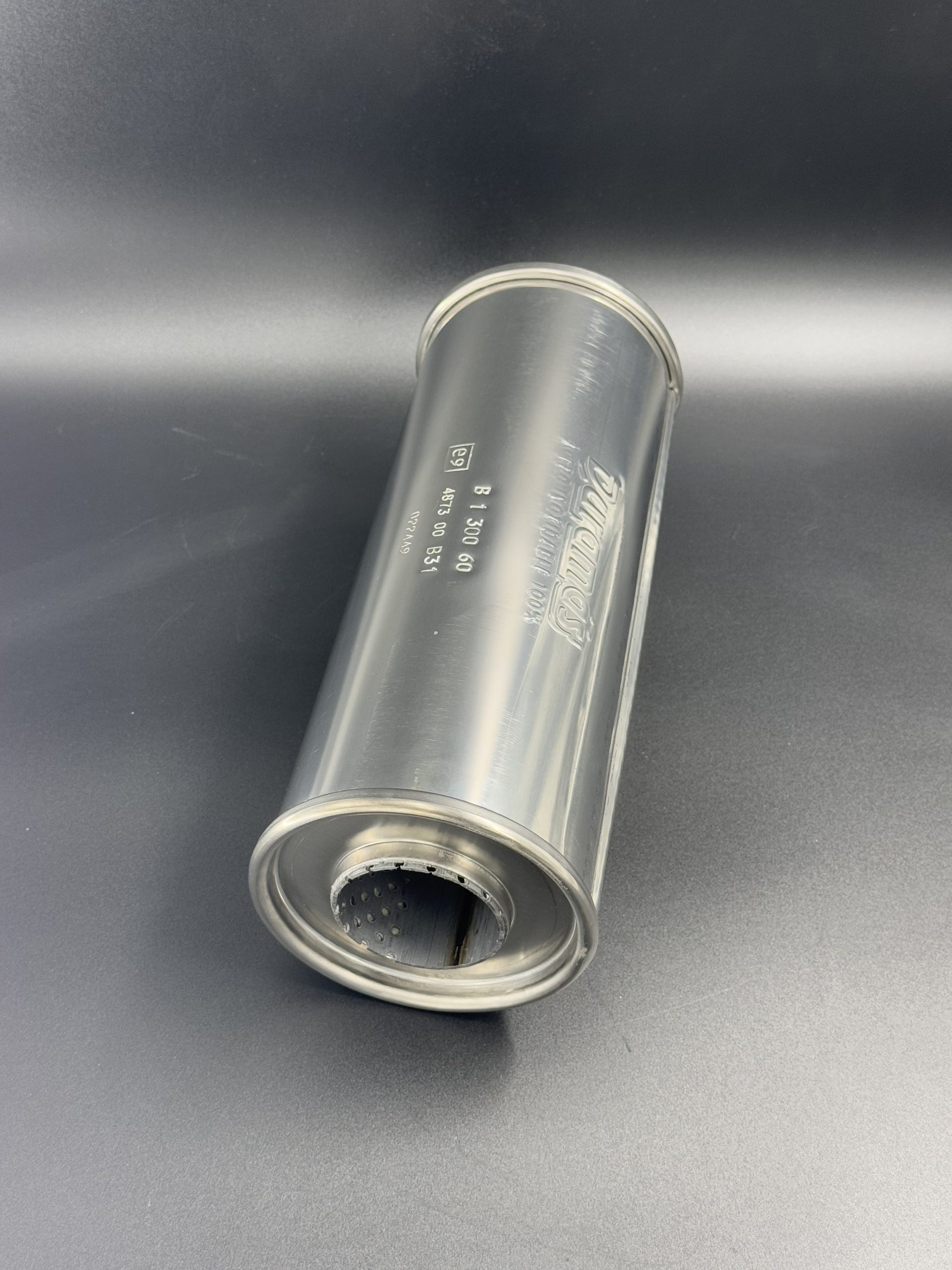 Escape Duramás INX B 1 300 60 en acero inoxidable, entrada y salida de 60 mm. Medidas: 300L x 110Al x 110An. Verifica la homologación para tu vehículo. Si tienes dudas, consúltanos.