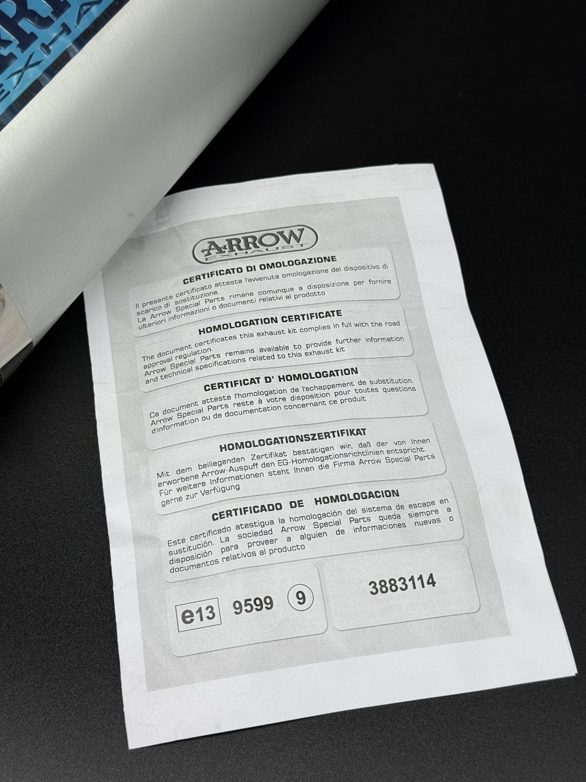Escape homologado Arrow diseñado específicamente para la Kymco Xciting 400, ofreciendo un equilibrio perfecto entre rendimiento, diseño y sonido deportivo. Este escape cuenta con un exterior de aluminio ligero y resistente, mientras que su interior está fabricado en acero inoxidable, garantizando durabilidad y resistencia a la corrosión.